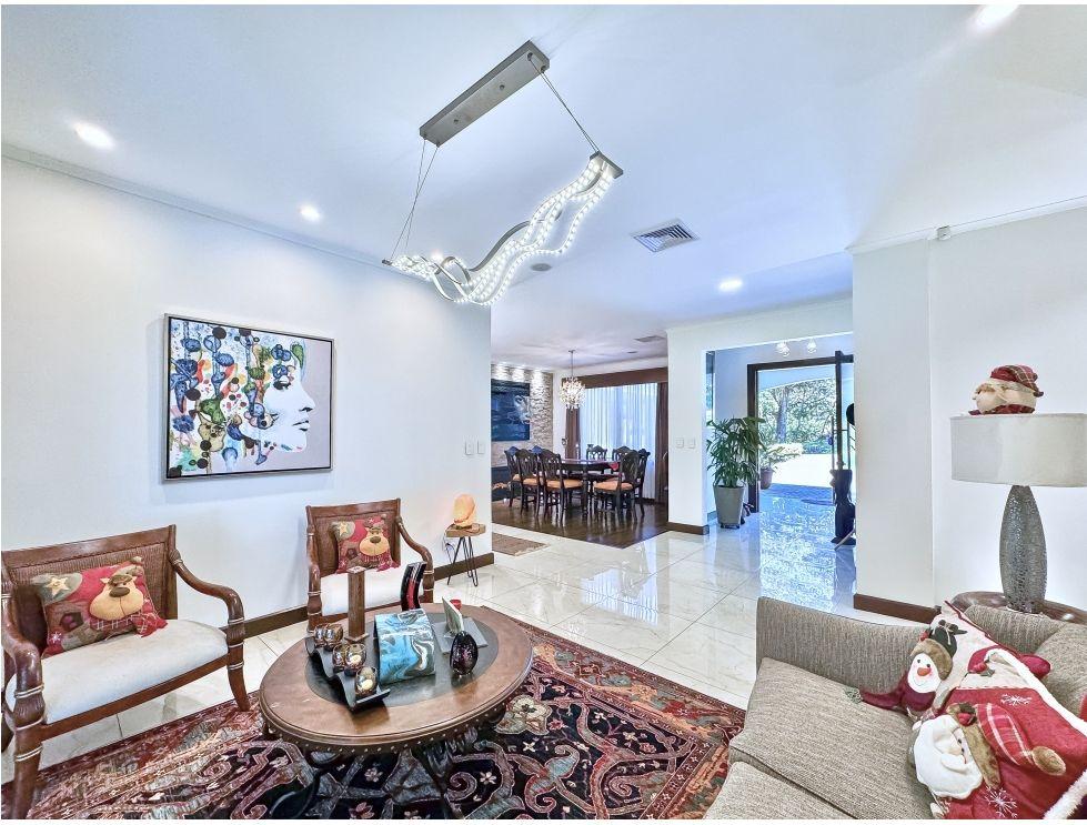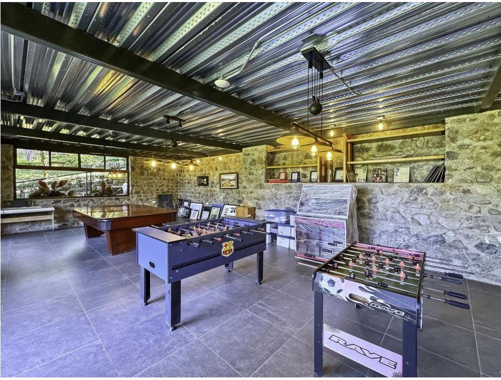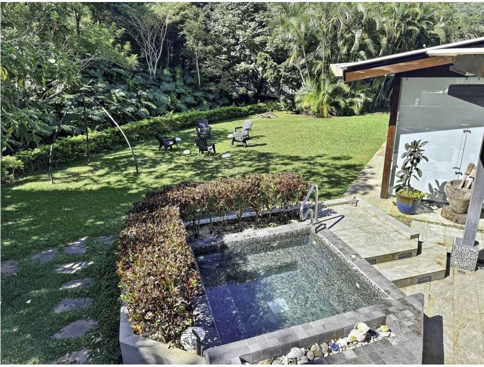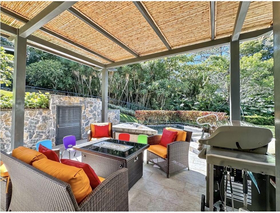 ID# 117472. Luxury One-Level Estate for Sale in Santa Ana, Costa Rica | 7,121m2 land | 1,069m2 construction | 6 bedrooms | 7 bathrooms. Oak Trees Estate is a rare one-level luxury home for sale in Santa Ana, Costa Rica set on an extraordinary 7,121 m² lot with 1,069 m² of total construction inside a quiet gated community surrounded by greenery and mountain views, yet minutes from Route 27 and the best amenities of the west side. This estate blends privacy, nature, and architectural character with immediate access to premier shopping plazas, top private schools, and leading medical centers, positioning it as a standout opportunity within the Santa Ana luxury real estate market. Conceived as a private sanctuary near the city, the property includes a four-bedroom primary residence with four full bathrooms and maid’s quarters, an independent one-bedroom cottage house, a two-level rustic-contemporary clubhouse, expansive gardens, a swimming pool, garage, and generous visitors parking, all connected by walking trails and a picturesque bridge beneath mature trees that create a truly unique lifestyle setting ideal for a primary residence, multigenerational compound, or high-value investment. From the manicured entrance and tranquil fountain, the foyer opens into spacious living and dining areas that connect naturally to a covered terrace finished with wood beams, caña brava ceilings, and tempered glass enclosures. Large glass doors flood the interiors with natural light and reveal an extensive garden with lounge and play areas framed by mature trees, where the pool, fire pit, and outdoor Jacuzzi create a perfect environment for entertaining or relaxing in total privacy. The chef’s kitchen flows into a TV lounge defined by dramatic high ceilings, designer lighting, and a glass-enclosed wine cellar, while refined finishes throughout the home include marble social floors, porcelain terrace floors, wood bedroom floors, granite countertops, stone accent walls, crown molding, central air conditioning, interior and exterior audio systems, and a practical laundry area designed for daily convenience without compromising elegance. The primary bedroom suite offers generous proportions and opens to a covered patio with Jacuzzi, incorporating a sitting area, walk-in closet, and spa-style bathroom with soaking tub, walk-in shower, and dual vanities. Two secondary bedrooms overlook lush gardens and share a Jack-and-Jill bathroom, while a fourth bedroom enjoys its own en-suite bathroom and green views, creating an ideal layout for families or guests. Beyond the main residence, the two-level clubhouse enhances the estate’s versatility with a first level currently used as a game room that can easily be converted into a private apartment, and a second level featuring a kitchen, bar with Guanacaste wood countertop and onyx siding, large social area, bathroom, wood beam ceilings with caña brava, decorative lighting, and a blend of stone and porcelain finishes that make it perfect for gatherings, events, or extended stays. The independent cottage house presents a studio-style layout with porcelain floors, caña brava coffered ceiling, air conditioning, full bathroom, and sliding doors that open to a terrace, providing additional privacy for visitors, workspace potential, or rental use. Practical infrastructure includes a garage, extensive visitors parking, a large storage room, maid’s quarters with full bathroom, two water reserve tanks with a combined capacity of 14,000 liters, and pre-installed piping for solar panels. Located minutes from the prestigious Valle del Sol Golf Course and lifestyle destinations such as City Place Santa Ana, Plaza Momentum Lindora, Terrazas Lindora, and Multiplaza Escazú, Oak Trees Estate offers unmatched connectivity to Escazú, Lindora, the airport, and even the Pacific Coast, delivering the perfect balance between estate-level privacy and immediate access to the best of urban living in Costa Rica.