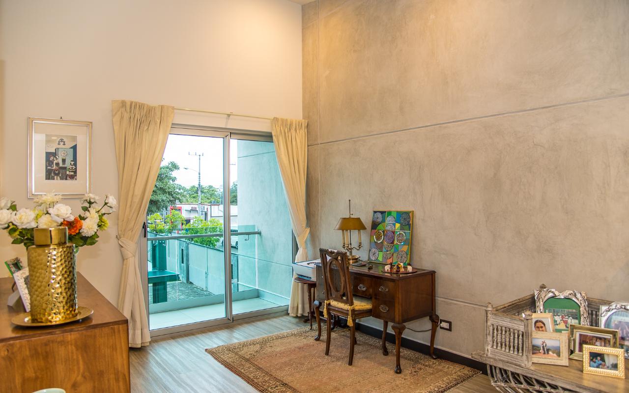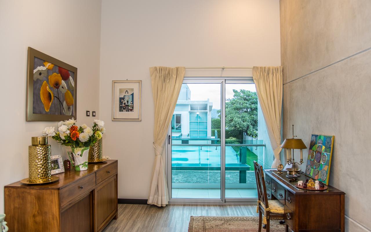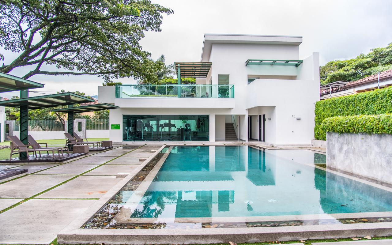 ID# 113978. Brand new contemporary home for sale in Santa Ana, exclusive private condominium, 285 sqmt construction, 386 sqmt land, 3 bedrooms, 3.5 baths, US$570.000. Wonderful two-story house with a very modern design that privileges natural light and air flow, plu exquisite deluxe finishes and details throughout. Open concept first floor that features a spacious living and dining room. Beautiful open and fully equipped kitchen with breakfast bar. Large terrace and landscaped green areas. There’s also a TV room, half bath for visits, the laundry room and a full service room. The second floor presents three ample bedrooms with private bath each, deluxe hardwood flooring, double height ceilings and large windows with views. There are 2 bodegas and parking space for 4 vehicles. The condominium offers 24/7 security and great common areas that include pool with BBQ area and gym. Excellent location, close to shopping centers, supermarkets, banks, restaurants, centers, private hospitals, with different access roads.