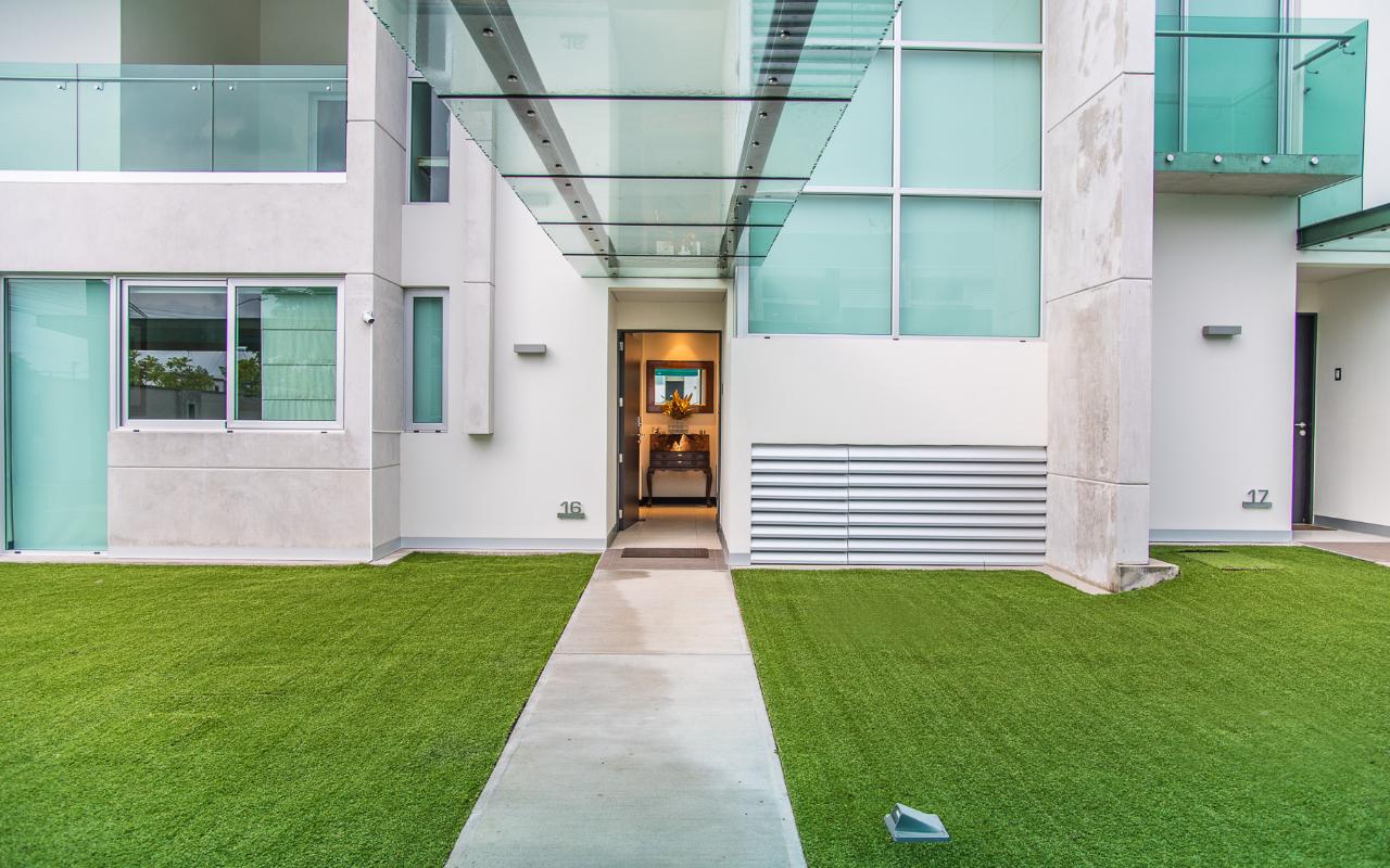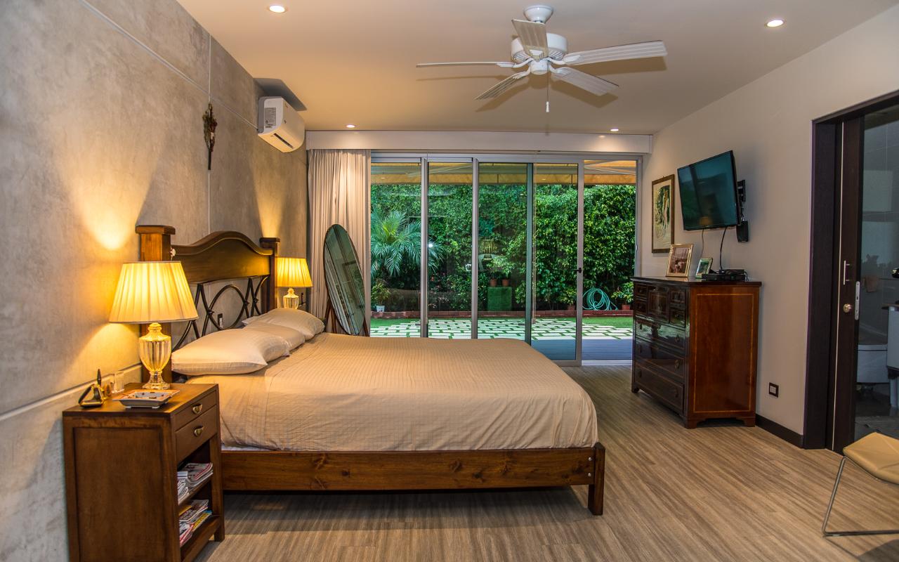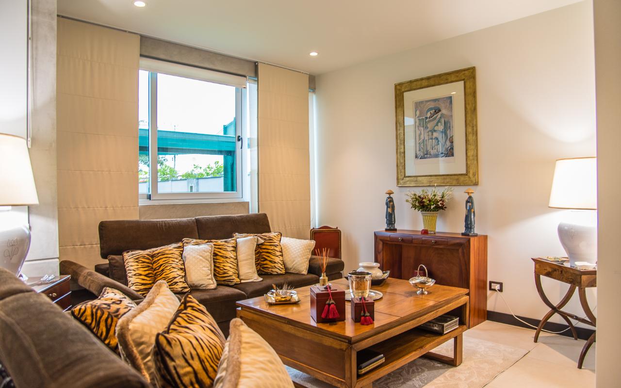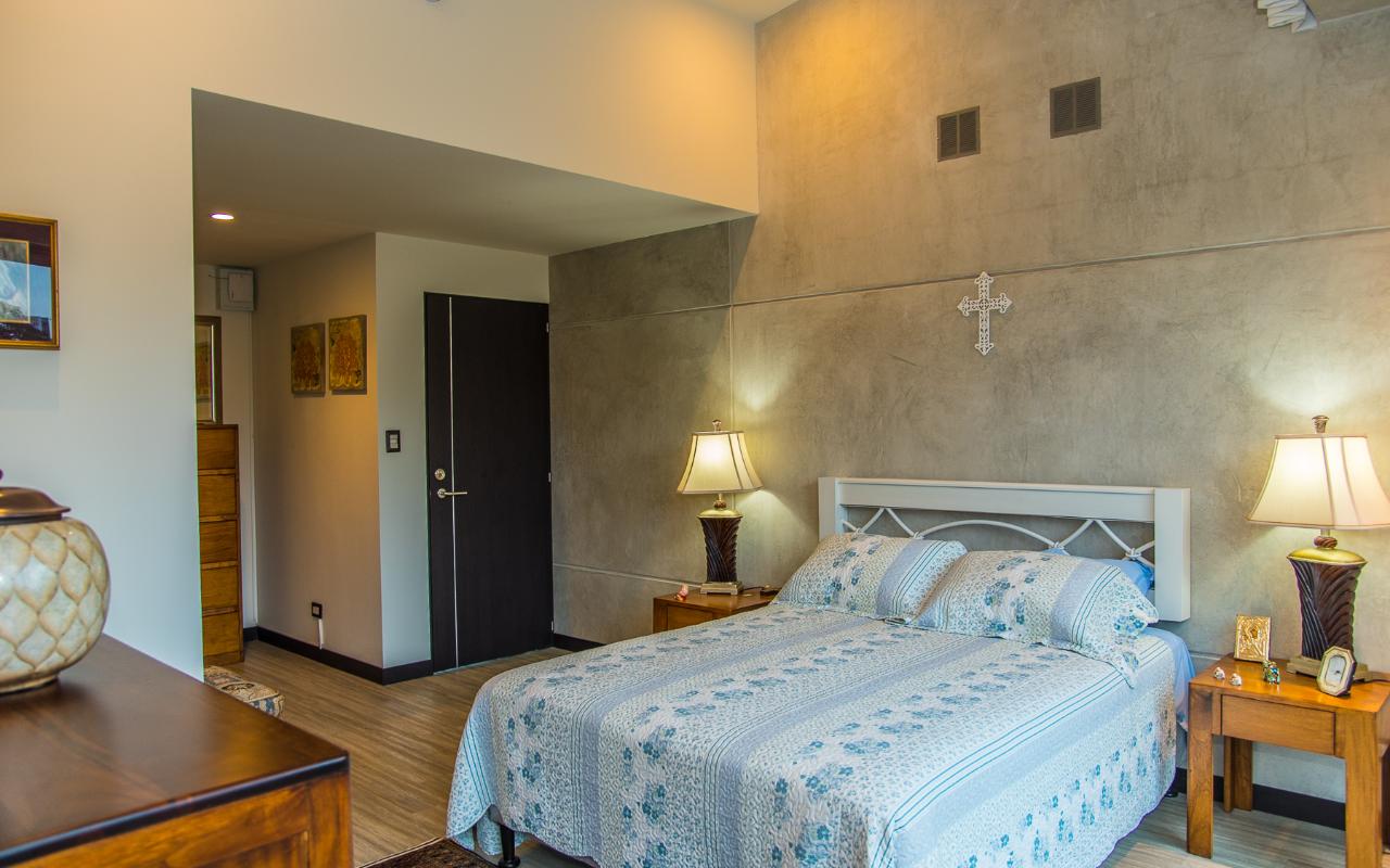 ID# 113978. Brand new contemporary home for sale in Santa Ana, exclusive private condominium, 285 sqmt construction, 386 sqmt land, 3 bedrooms, 3.5 baths, US$570.000. Wonderful two-story house with a very modern design that privileges natural light and air flow, plu exquisite deluxe finishes and details throughout. Open concept first floor that features a spacious living and dining room. Beautiful open and fully equipped kitchen with breakfast bar. Large terrace and landscaped green areas. There’s also a TV room, half bath for visits, the laundry room and a full service room. The second floor presents three ample bedrooms with private bath each, deluxe hardwood flooring, double height ceilings and large windows with views. There are 2 bodegas and parking space for 4 vehicles. The condominium offers 24/7 security and great common areas that include pool with BBQ area and gym. Excellent location, close to shopping centers, supermarkets, banks, restaurants, centers, private hospitals, with different access roads.
