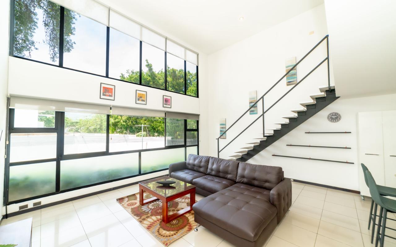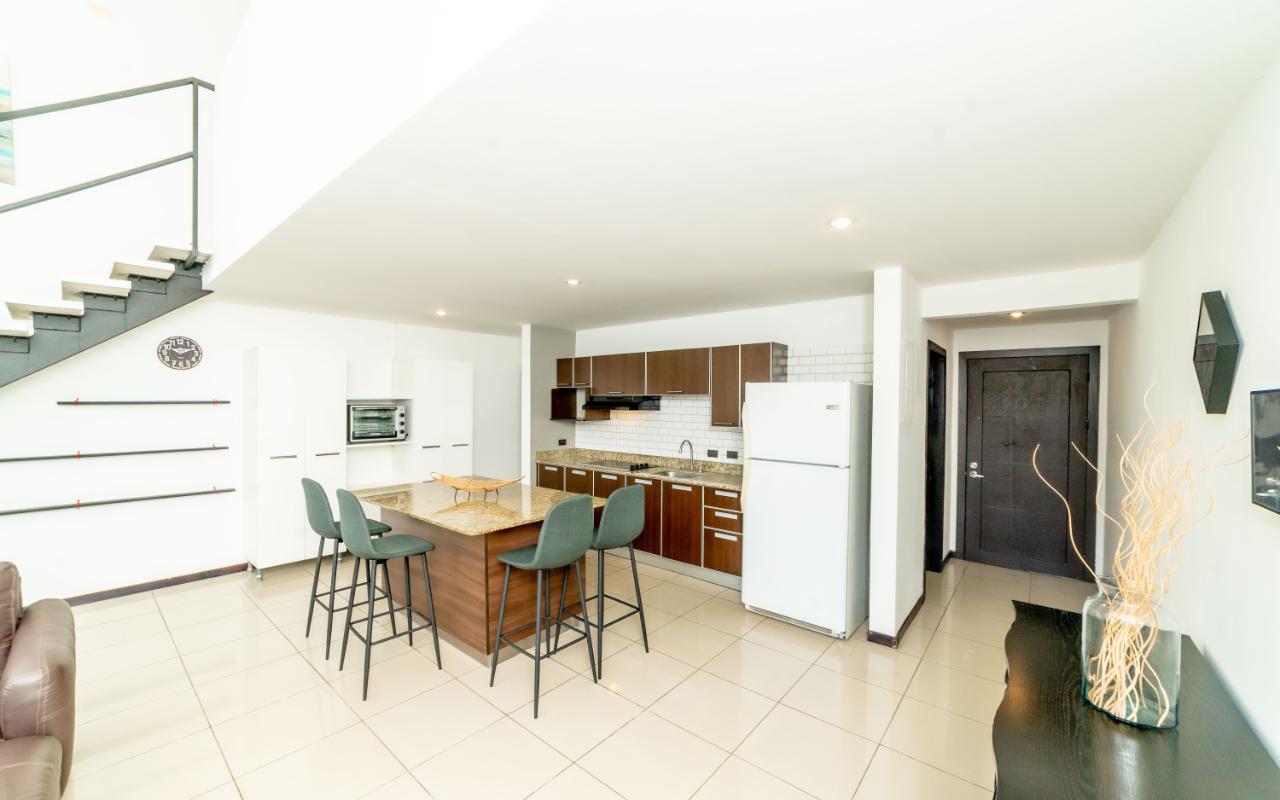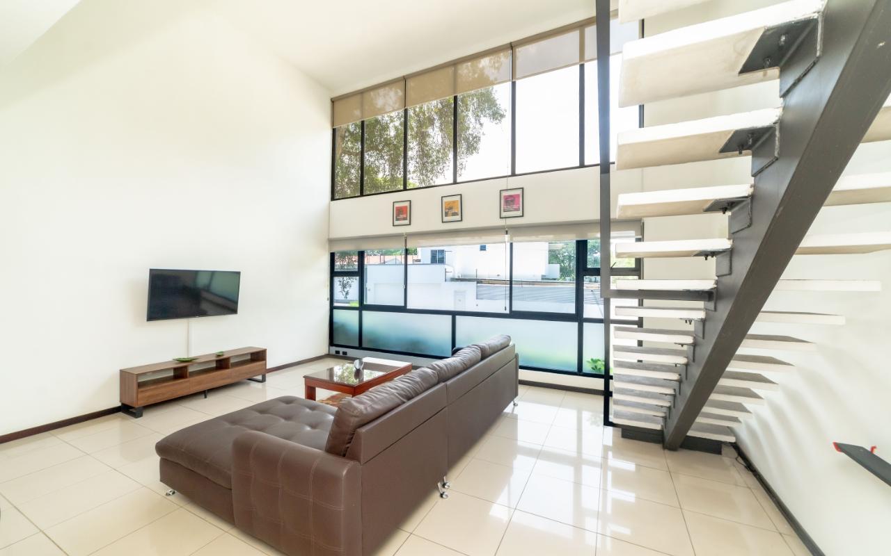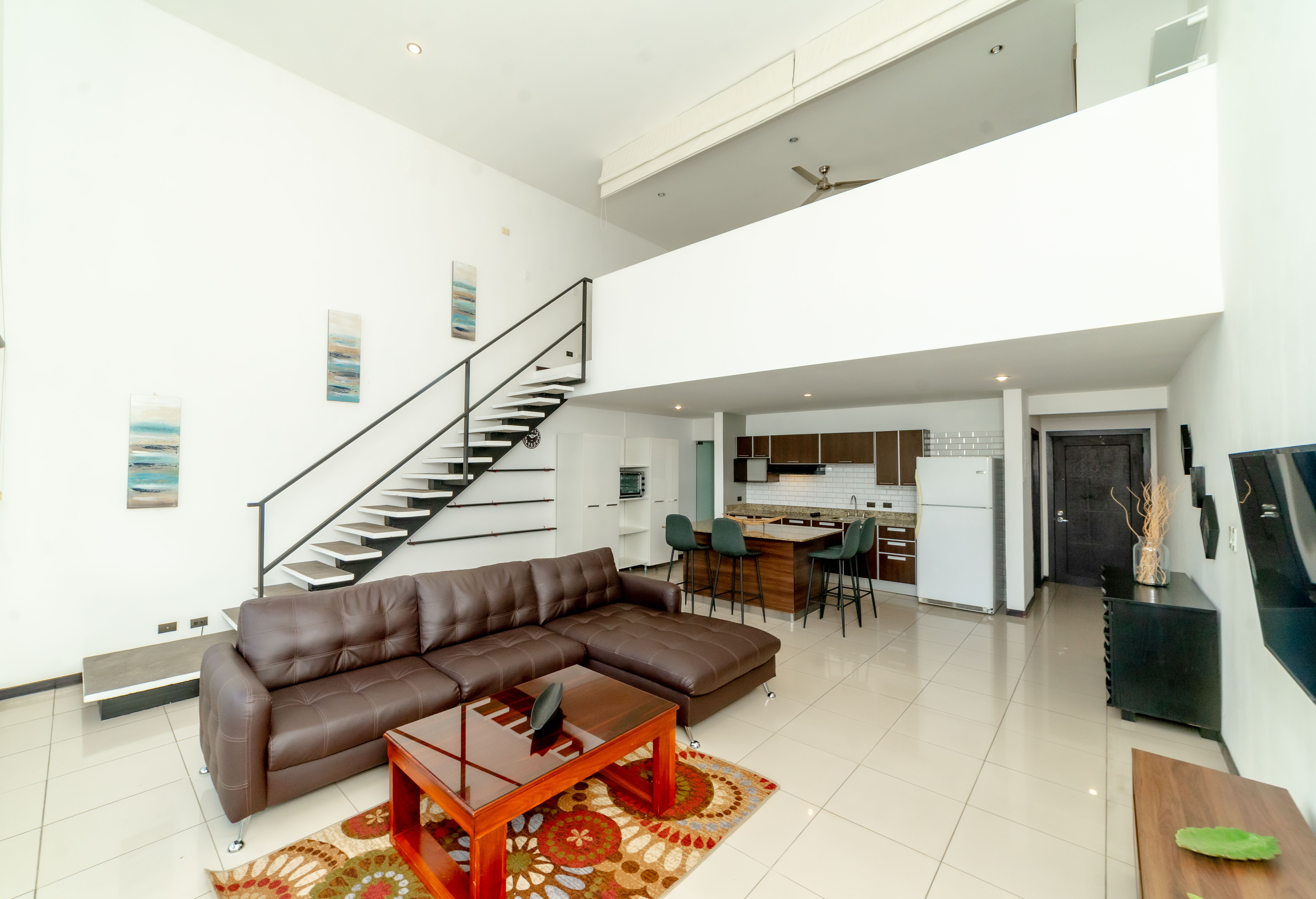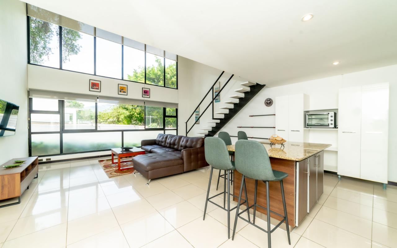 ID# 115085. 100m2 I This stunning modern furnished loft in Bello Horizonte, Escazú is a rare opportunity to own or rent a contemporary apartment in one of the most desirable residential zones on Costa Rica’s West Side. Located inside a private condominium in Escazú, this stylish loft offers 100 m² of construction, double-height ceilings, and expansive floor-to-ceiling windows that flood the space with natural light, creating an airy, sophisticated atmosphere highly sought after in luxury real estate in Escazú. The property is offered for sale at US$175,000 and for rent at US$1,200 per month, with condominium maintenance included, making it an excellent option both as a primary residence and as an investment property in Costa Rica. The loft is fully furnished with a clean, modern aesthetic and high-quality finishes, all in impeccable condition. The open-concept layout integrates a spacious living area with a modern kitchen featuring an island and breakfast bar, fully equipped with contemporary appliances—ideal for entertaining or everyday living. Upstairs, the loft-style design leads to a comfortable and private bedroom, complemented by two full bathrooms, a rare feature in loft apartments in Escazú that adds flexibility and comfort. The unit also includes two assigned parking spaces, a major advantage in this high-demand area. Situated in Bello Horizonte, the property enjoys immediate access to Escazú’s best restaurants, cafés, luxury shopping centers, supermarkets, gyms, and medical services, including Avenida Escazú, Multiplaza Escazú, and top private hospitals such as CIMA. Its strategic location provides quick access to Route 27, connecting efficiently to Santa Ana, Escazú’s corporate centers, and the Pacific Coast beaches, while Juan Santamaría International Airport (SJO) is approximately 25 minutes away, making this loft ideal for executives, digital nomads, or frequent travelers. Combining modern architecture, prime location, and strong rental appeal, this luxury loft apartment in Escazú represents an outstanding lifestyle and investment opportunity in the Costa Rica real estate market. Contact us today to schedule a private showing and experience elevated urban living in one of Escazú’s most sought-after neighborhoods.