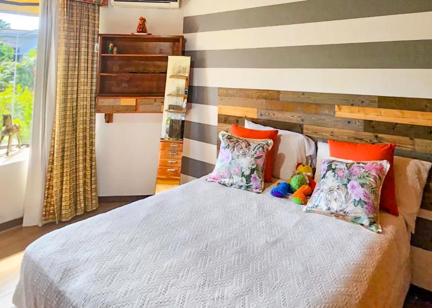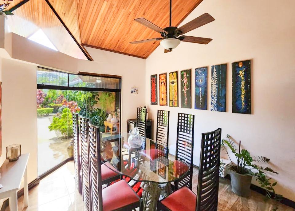 ID# 116701. Independent house for sale or rent in La Guácima, Hacienda Los Reyes condominium, 300 sqm construction, 2.000 sqm land, 3 bedrooms, 2.5 baths, US$620,000. This beautiful rustic house is a one-level property located in a tranquil and peaceful Hacienda Los Reyes, adjacent to one of its parks. It has 300-sqm of construction, built on a 2.000-sqm lot. The house features high coffered ceilings with exposed beams, a spacious and independent kitchen designed with a brick oven and custom made cabinetry. There is a dining room with direct access to a covered terrace with a second kitchen. The house also has 3 ample and comfortable bedrooms with garden vies, 2.5 bathrooms and a service room. The property has its own private well and irrigation system for easy maintenance of the gardens. The property has two covered parking spaces in the garage and two uncovered parking spaces. This rustic house is perfect for those looking for the easy going Pura Vida lifestyle in the countryside that Hacienda Los Reyes has to offer. With its independent kitchen, spacious dining room, and covered terrace, it is the ideal place to enjoy the best of the outdoors. Hacienda Los Reyes is a very family-oriented community that offers a full private security system, and a whole lot of excellent amenities for its residents to seize and enjoy. There are many recreational spaces such as polo, tennis and golf courts within an abundant nature environment that surrounds the houses. Enjoy an excellent climate, beautiful mountains, green meadows, lush trees, fresh air, water, forest reserves, and abundant nature in general.