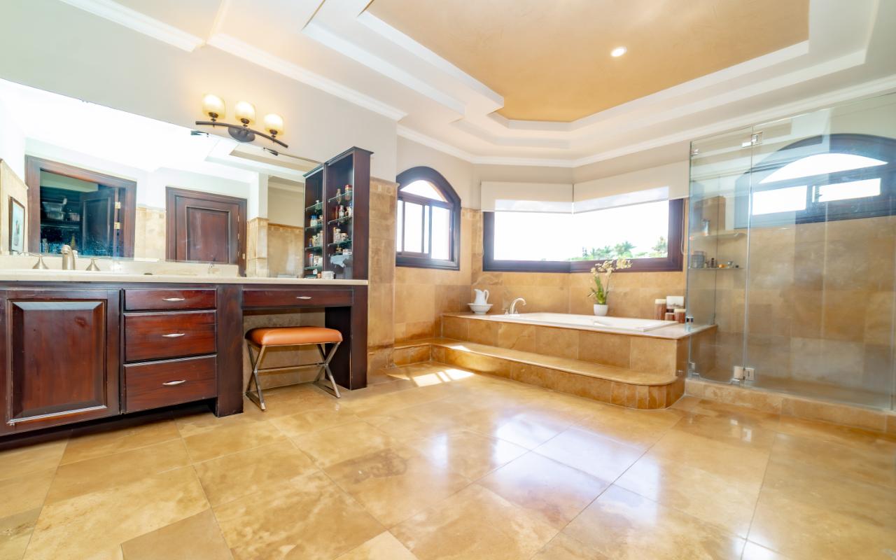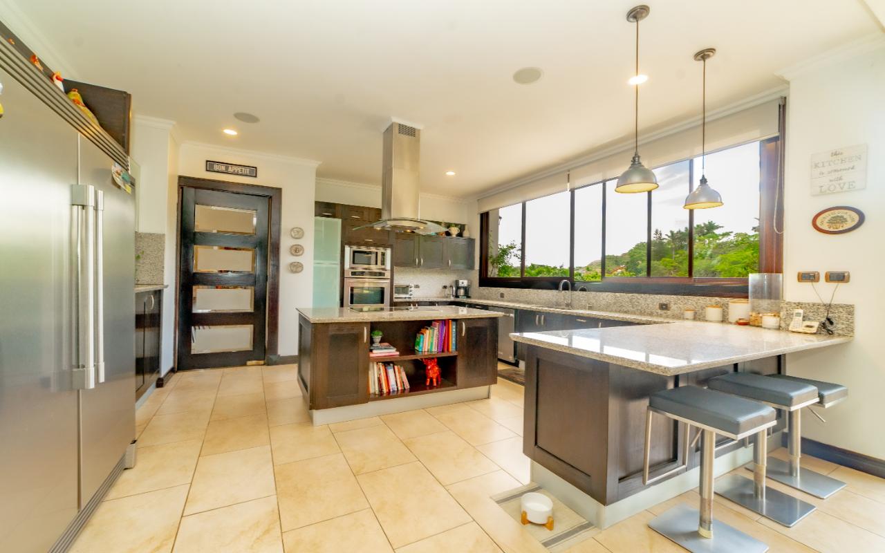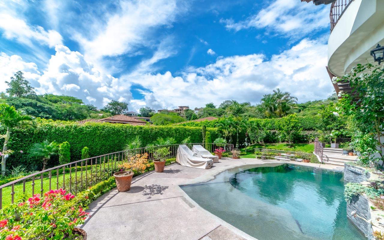 ID# 116805. Luxury home for sale in Pozos, Santa Ana, Villa Real condominium, 625 sqm construction, 1.276 sqm land, 4 bedrooms, 5.5 baths, US$1.385.000. Tucked away amidst meticulously manicured gardens, this residence offers a true sanctuary for those seeking a life of luxury. Every detail has been thoughtfully curated, from the vaulted ceilings and marble floors to the seamless integration of spaces. Perfectly situated between the vibrant towns of Escazú and Santa Ana on San Jose's west side, this prime location grants you access to the best that Costa Rica's capital city has to offer. The moment you arrive at this stunning residence, you are greeted by a façade adorned in earth tones, evoking a sense of tranquility and harmony. The elegant combination of stone walls, tiled roofing, and high ceilings creates a timeless aesthetic that sets the stage for what lies beyond. As you make your way through the lush garden, you are welcomed by the grand entrance, where two beautifully crafted wood doors beckon you inside. Descending just two steps, the social area unfolds before you, seamlessly merging the living room and dining room into a cohesive space. The marble floors exude sophistication, while the glass sliding doors effortlessly connect these areas to the terrace, blurring the lines between indoor and outdoor living. The terrace itself is a masterpiece, boasting a delicate cane-detailed ceiling and exposed wood beams. Adorned with stone-covered walls and a built-in counter featuring a BBQ, sink, and storage space, this enchanting space is designed for entertaining in style. With the added convenience of retractable shades. From the terrace, an open distribution leads you to the captivating swimming pool area. The pool is adorned with unique stone detailing, creating an ambiance reminiscent of a natural lake. With its solar heating system, the pool can be enjoyed in any season. Ample space for sun tanning and unwinding awaits you, surrounded by the lush garden that seamlessly integrates with the pool area. A tall shrub hedge envelops the property, ensuring privacy and tranquility, allowing you to revel in the natural splendor of your surroundings. Back inside, the kitchen boasts a spacious layout with a central kitchen counter and an additional expansive, L-shaped counter, this culinary haven is a true delight. The Euromobilia furniture, along with high-end appliances, make this kitchen as functional as it is stylish. Sliding windows infuse the space with natural light and fresh air, enhancing the joy of cooking. An informal dining space seamlessly connects to the kitchen through glass sliding doors, offering breathtaking views of the pool and garden. Additionally, a double-swing door opens to the elegant dining room, creating a seamless flow for entertaining. The first floor features a secondary bedroom with a full bathroom, providing a comfortable space for guests. Adjacent to the main entrance, a guest bathroom adorned in marble veneer and featuring a marble countertop adds a touch of opulence to this home. As you ascend the staircase to the second floor, you are greeted by an elegant iron-forged detailing and a spacious TV room, serving as a gathering place outside the bedrooms. Each bedroom on this floor exudes timeless charm, with wood-detailed ceilings and elegant marble floors. The master suite is a true oasis, boasting vaulted ceilings with exposed wood beams and access to a private balcony. Immerse yourself in breathtaking mountain views, and indulge in the lavish comforts of a large walk-in closet and a deluxe bathroom adorned with marble veneer, a vanity, and a relaxing jacuzzi. Three additional secondary bedrooms, each with an ensuite bathroom and walk-in closet, offer unparalleled comfort and style. With wood ceilings and ivory-colored marble floors, these rooms exude a sense of understated luxury. Currently, one of the bedrooms is utilized as a multi-purpose room with a full bathroom, presenting endless possibilities as a gym, office, or additional bedroom. Practicality meets luxury with two garage spaces, strategically connected to the kitchen, as well as additional outdoor parking for two vehicles. The kitchen conveniently connects to the maid's room, complete with a bathroom, and the laundry area. Utopia's delightful garden is effortlessly maintained with an automatic irrigation system, ensuring that your outdoor haven remains lush and vibrant year-round. Villa Real is an exclusive community renowned for its charming cobbled streets and an array of exceptional amenities. The social area offers a BBQ clubhouse, a children's playground, and a lap pool, providing endless opportunities for relaxation and recreation. For the sports enthusiasts, a covered tennis court, a turf soccer field, and a basketball court are within easy reach. When special occasions arise, an indoor social area is available for celebrations or any other event you desire. Triple-level security, hiking trails, and direct access to Route 27 further enhance the allure of this prestigious community. Just minutes away, you'll find top-quality schools, services, and restaurants in the vibrant neighborhoods of Escazú and Santa Ana. Contact our esteemed real estate experts today to schedule a private viewing and begin your journey to owning this remarkable home.