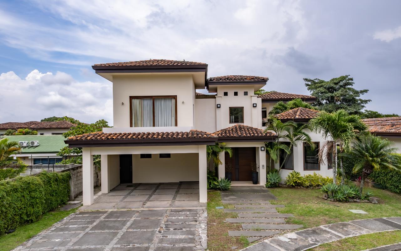 ID# 116960. Contemporary House for Sale or Rent, Bosques del Río Condominium, 500 sqm of construction, 667 sqm of land, 4 bedrooms, 4.5 bathrooms, US$1.050.000 or US$5.000/month. In the beautiful city of Santa Ana, where elegance and comfort merge, we are pleased to present an unparalleled gem: Casa Cala, an impressive contemporary-style house that epitomizes luxury and sophistication. This residence, located in one of the most exclusive condominiums in the area, is a testament to architectural artistry and attention to detail. This area, renowned for its lush landscapes and tranquil ambiance, has become the preferred choice for those seeking a sophisticated lifestyle. In the vicinity of this property, you'll find a variety of fine dining restaurants that will delight your palate with authentic and exquisite flavors. From local gastronomic options to international restaurants, Santa Ana's culinary scene is diverse and thrilling for any food enthusiast. Furthermore, for your daily convenience, there are renowned supermarkets offering fresh products and a wide range of choices. These establishments are just minutes away from your new home, making shopping hassle-free and ensuring you have everything you need at your fingertips. Regarding education, Santa Ana boasts some of the region's best schools and colleges. These educational institutions are dedicated to academic excellence and the holistic development of students. Having these quality education options close to your home is an invaluable advantage for families who prioritize their children's education. Safety is a priority in this gated community. The condominium where this house is located provides unparalleled tranquility thanks to its 24/7 security system. You can enjoy the peace of mind that comes from knowing that your home and your family are protected at all times. The amenities of this condominium are simply exceptional. Picture yourself relaxing on a sunny summer afternoon by the pool, surrounded by lush gardens and the soothing sound of water. Additionally, for outdoor barbecue enthusiasts and gatherings, the BBQ ranch offers the perfect venue for unforgettable moments with friends and family. These amenities not only add value to your property but also enrich your lifestyle, offering experiences you will cherish forever. Strolling on the cobblestone streets of this condominium is akin to walking in an elegant European neighborhood. Meticulous urban planning blends seamlessly with the natural beauty of the surroundings, creating a charming and welcoming atmosphere. Every step you take on these streets will remind you why you chose this place as your home. From its architectural design to the amenities it offers, every aspect of this property has been carefully considered to provide you with an unparalleled living experience. Don't miss the opportunity to own this wonderful property!