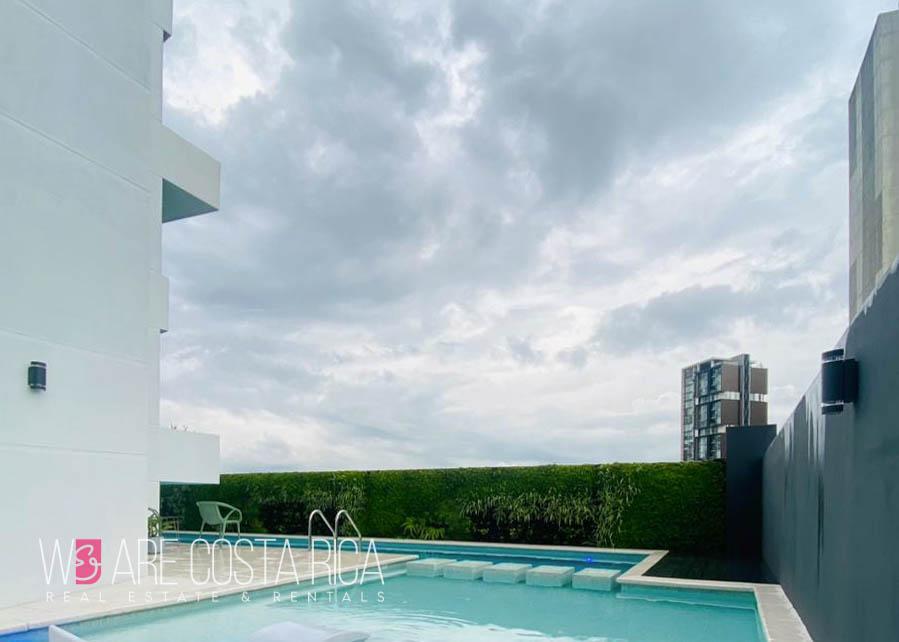 ID# 116972. Modern apartment for rent in Rohrmoser, Nunciatura, 81 m2, 2 bedrooms, 2 bathrooms, US$1,800/month. One of the standout features of this apartment is its location on a high floor, providing you with panoramic views that are simply spectacular. From your private balcony, you can enjoy dreamy sunrises and sunsets while taking in the majesty of the city and the surrounding mountains. This view connects you with Costa Rica's natural beauty without leaving your home. With 81 square meters of living space, this apartment is perfect for couples, professionals, and small families. It boasts two spacious bedrooms and two bathrooms, giving you the privacy you need. Every corner of this space has been thoughtfully designed to blend style and functionality. This apartment comes with an entirely new white goods package, which means you'll have state-of-the-art appliances at your disposal. The kitchen is fully equipped with everything you need to prepare delicious meals. Additionally, the curtains are already installed, allowing you to easily control the amount of light entering your home. The rent for this luxurious apartment, including maintenance fees, is $1,800 per month. This is a reasonable price for a property of this caliber and offers you the opportunity to enjoy an unparalleled lifestyle in a premium location. Nunciatura Condominium offers an exceptional living experience by combining the comforts of the apartment itself with a range of services and amenities that will make you feel like you're living in an urban retreat. Some of the advantages you'll find include 24-hour security for your peace of mind, a well-equipped gym to keep you in shape without leaving the complex, a pool and outdoor recreational areas ideal for socializing or just relaxing, access to green areas that connect you with nature without moving away from the city, and a central location that puts you close to the city's major shopping centers, restaurants, entertainment hubs, and business centers. Don't miss the opportunity to live in the luxury and comfort that this magnificent apartment in Rohrmoser offers! Contact us today for more information and to schedule a visit. Your dream home awaits.