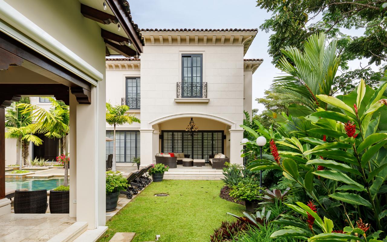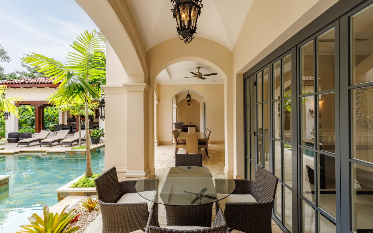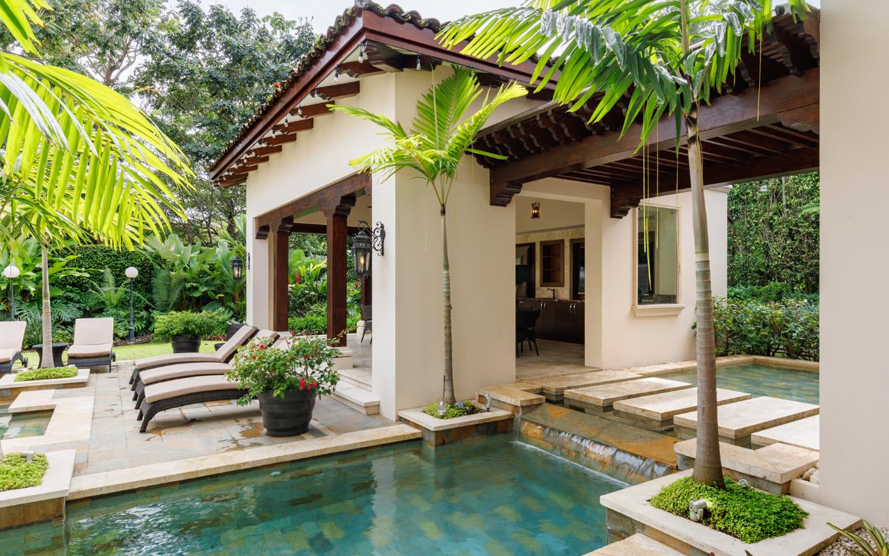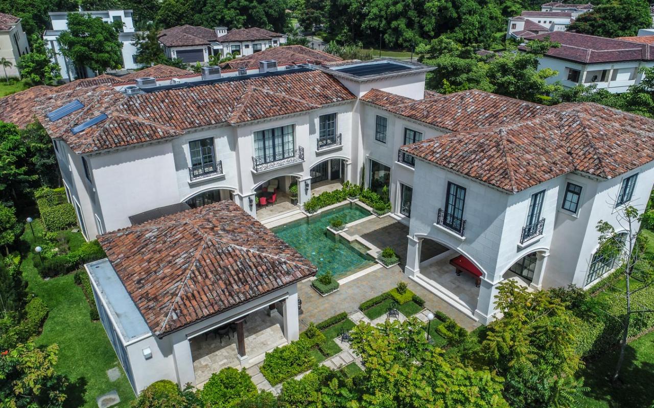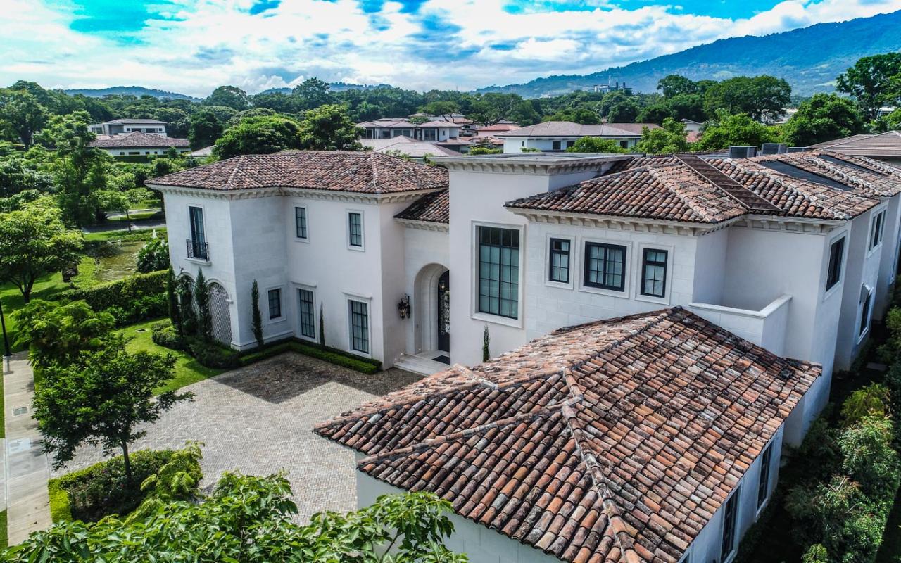 ID# 117134. Villa di Lago, Hacienda del Bosque condominium, Santa Ana. 4 bedrooms, 4 bathrooms, 1,055 sqm of construction, 1,531 sqm of land, US$4,850,000. Located in the exclusive La Hacienda del Bosque condominium in Santa Ana, one of Costa Rica's most prestigious private developments, Villa Di Lago blends the elegance of European classical architecture with contemporary designs using bespoke materials and furniture of the highest quality. Every detail of this residence has been meticulously crafted to reflect a sophisticated and timeless style. Upon entering the elegant front door, a vibrant interior unfolds, balancing distinction with impeccable interior design. Villa Di Lago showcases architectural grandeur with spacious rooms, select materials, and a design incorporating personalized elements, beautiful gardens, and a private pool. The residence offers luxury finishes and state-of-the-art amenities, ensuring optimal privacy and security. It features two living areas, a main dining room, a breakfast area integrated with a terrace, a gourmet kitchen, and a gym, all connected to tranquil gardens surrounding the property. The impressive heated pool, built with imported Colombian colonial stone, complements multiple terraces and an entertainment area with barbecue, pizza oven, and guest bathroom. The residence is situated in La Hacienda del Bosque, a residential project inspired by classic Costa Rican architecture, located in the Rio Oro district of Santa Ana. This exclusive development on nearly flat land of 23 hectares comprises 119 lots within a gated community, monitored by a single entrance. It offers amenities such as two tennis courts, a clubhouse with pools, a gym, spa, yoga room, playground, extensive green areas with integrated lakes and fountains. La Hacienda's clubhouse, designed with rustic elements and quality finishes, provides a relaxing space reminiscent of rural haciendas. With tile roofs, stucco, and wood details both inside and out, the clubhouse is divided into social and spa areas, connected by a corridor surrounding a central water feature amid vegetation for added privacy. Villa Di Lago is a unique property designed for discerning owners with refined international tastes. Its interiors are meticulously designed to blend comfort and functionality, while spacious open areas and tall windows provide luminosity and a sense of expansiveness. Well-maintained gardens and outdoor entertainment areas perfectly complement Costa Rica's tropical lifestyle, offering a private pool as a tranquil oasis. Additionally, its strategic location provides easy access to Route 27, leading to renowned hospitals like El Cima, shopping centers like Multiplaza Escazú, and the main beaches of Costa Rica's Pacific coast. The property is sold fully furnished with high-end furniture and selected art, offering new owners a luxurious, move-in-ready living experience.