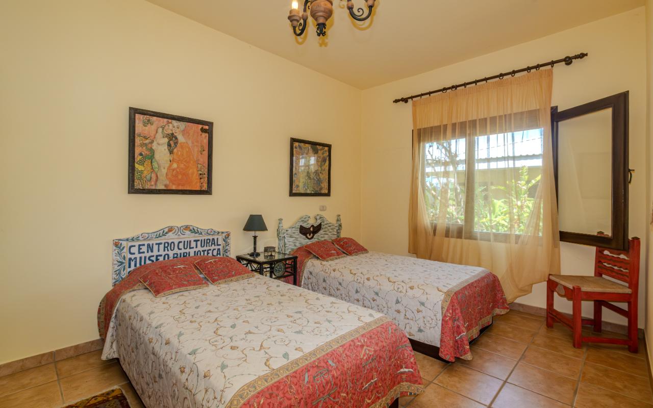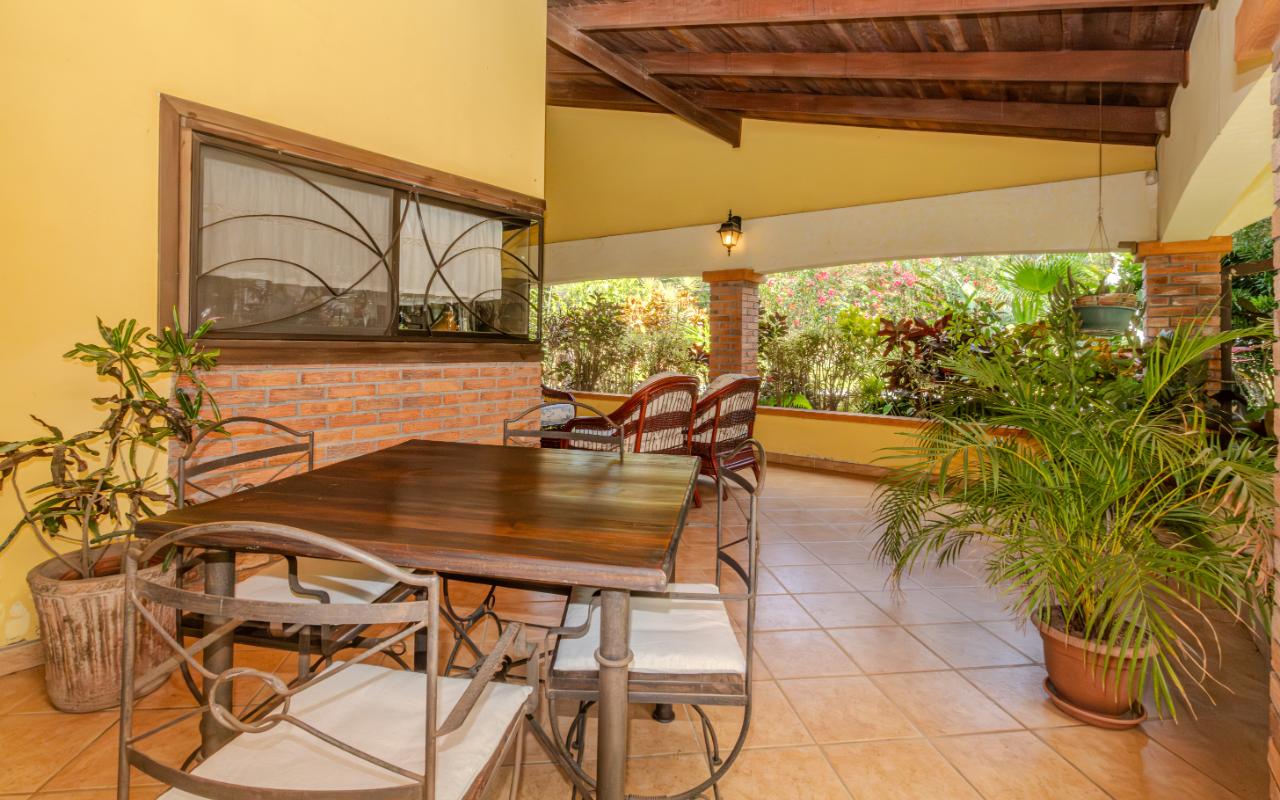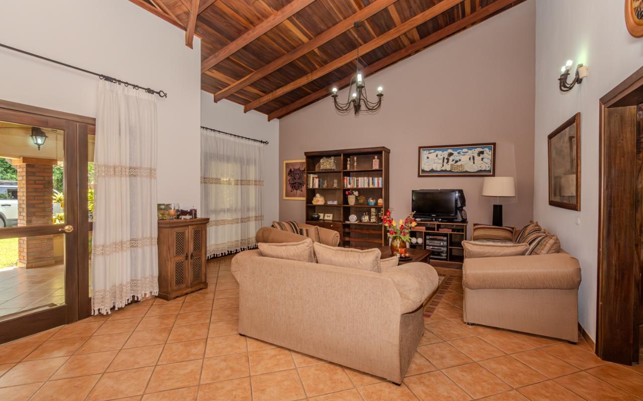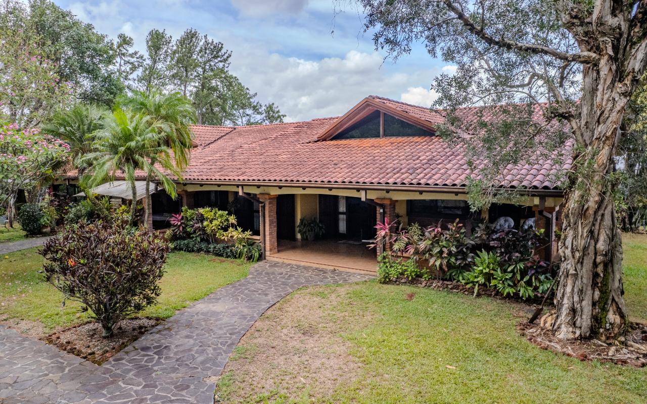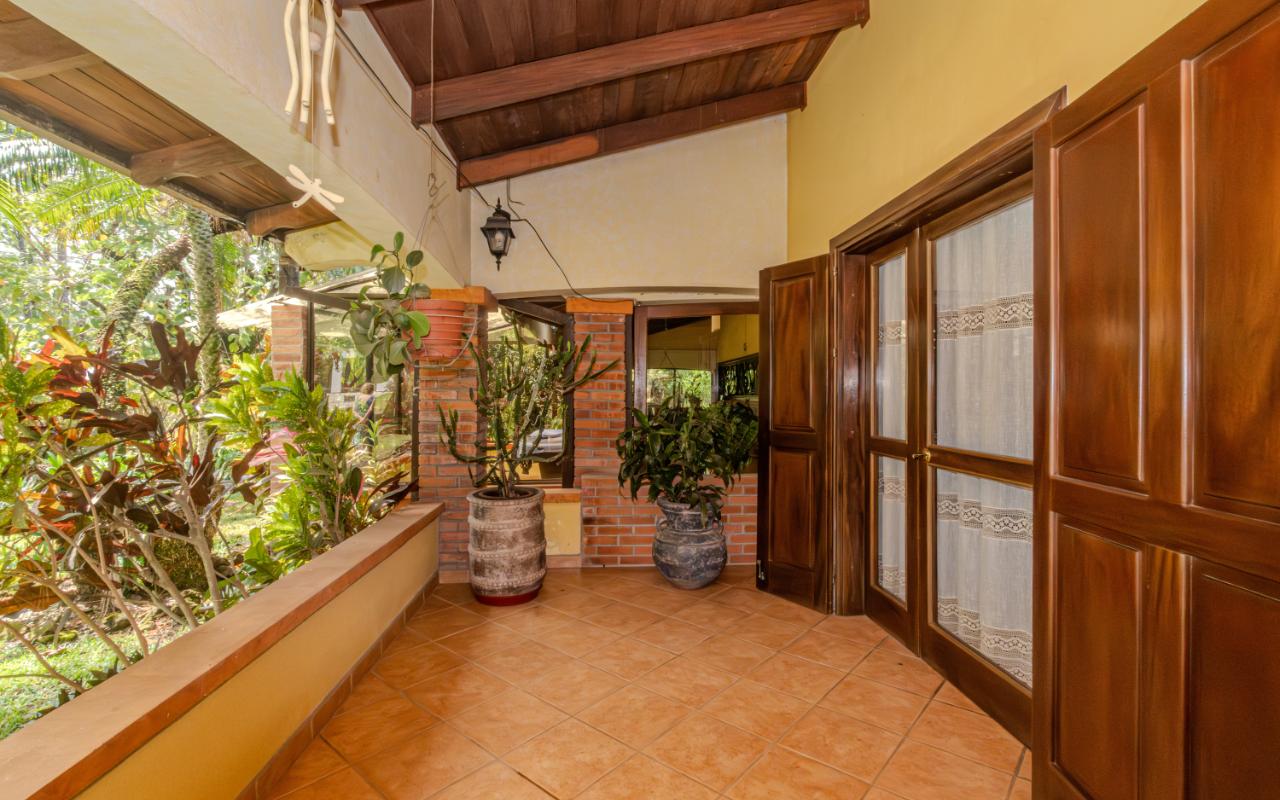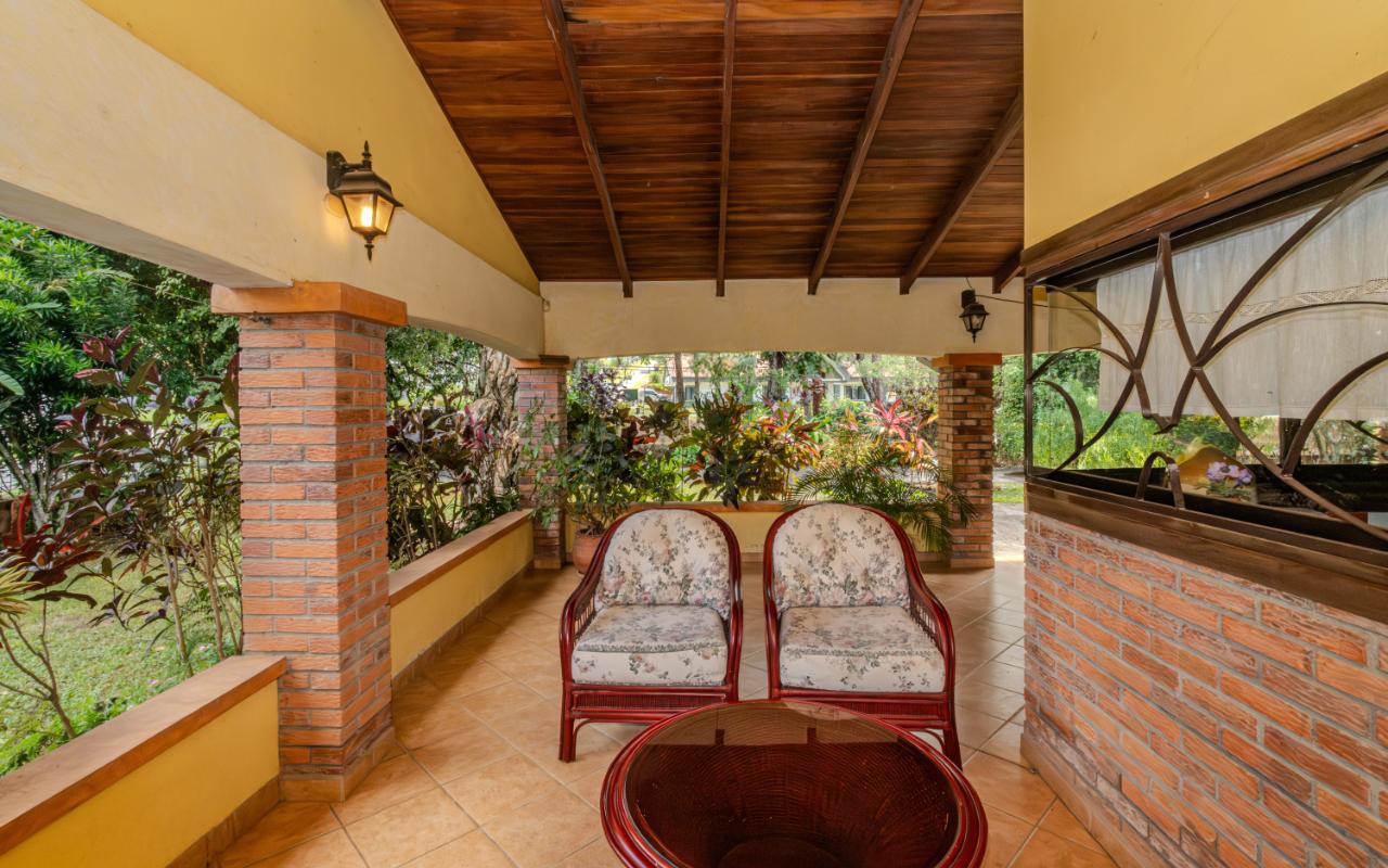 ID# 117350. Home for sale in Hacienda Los Reyes, La Guácima. 4 bedrooms, 4 bathrooms, 360 m² construction, 1,094 m² lot, US $450,000. Located within the prestigious residential community of Hacienda Los Reyes, this property offers a unique combination of space, privacy, and potential. This single-story home features colonial-inspired architecture, clay tile roofing, exposed brick columns, and a functional layout perfectly suited for those who value a peaceful lifestyle surrounded by nature. Its warm façade and mature garden immediately evoke a sense of home. A stone pathway leads through tropical landscaping and tall trees to a covered entrance that connects directly to the main social areas. Inside, the residence offers a spacious living room, separate dining area, and a practical kitchen with plenty of storage and a breakfast nook — all seamlessly integrated with the outdoor terrace that opens to the garden, creating a smooth connection with the natural surroundings. The bedrooms are generous and bright, with garden views, and the primary bedroom features an en-suite bathroom and walk-in closet. While the home is fully livable in its current condition, it also represents an excellent opportunity to remodel and personalize the spaces to the buyer’s taste, whether through modernizing finishes or expanding the construction area, thanks to the generous size of the lot. The property sits on a completely flat plot surrounded by consolidated vegetation, providing natural privacy, shade throughout the day, and a fresh microclimate that is hard to find in newer developments. The garden, with mature trees, palm species, and ornamental plants, not only enhances the ambiance but also offers enough space to build a swimming pool, BBQ rancho, studio, workshop, or guest house. The entire layout is designed for comfortable, single-level living, making it ideal for seniors, families with young children, or anyone who prefers to avoid stairs. Parking is ample, with a covered garage and additional space for visitors. This home is located in one of the most established sectors of Hacienda Los Reyes, a gated community with controlled access, wide tree-lined streets, a golf course, and a country club that includes a swimming pool, tennis courts, restaurant, gym, and an active social scene. Its location in La Guácima, Alajuela, offers quick access to Route 27 and direct connection to Santa Ana, Escazú, the international airport, and the Pacific coast. It is also close to international schools, supermarkets, healthcare services, and restaurants. In a market where new properties often mean smaller lots, limited vegetation, and higher building costs, this home stands out as a solid option for both living and investment. It offers authentic charm, the benefit of a mature garden, and the flexibility to adapt the space without losing its essence. Whether as a permanent residence, retirement home, second property, or investment opportunity, this house delivers what matters most: space, location, natural surroundings, and strong mid-to-long-term value potential.