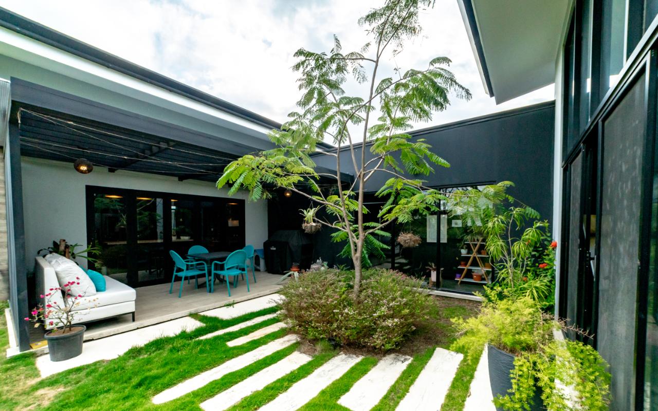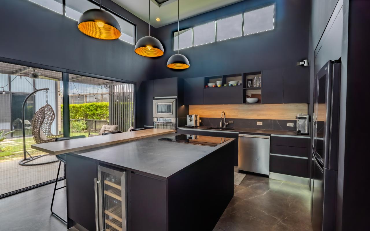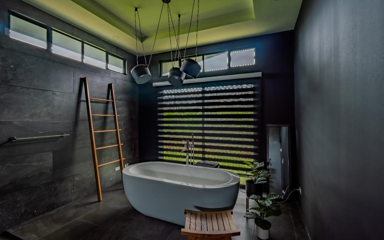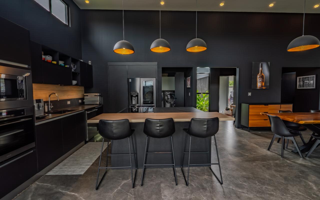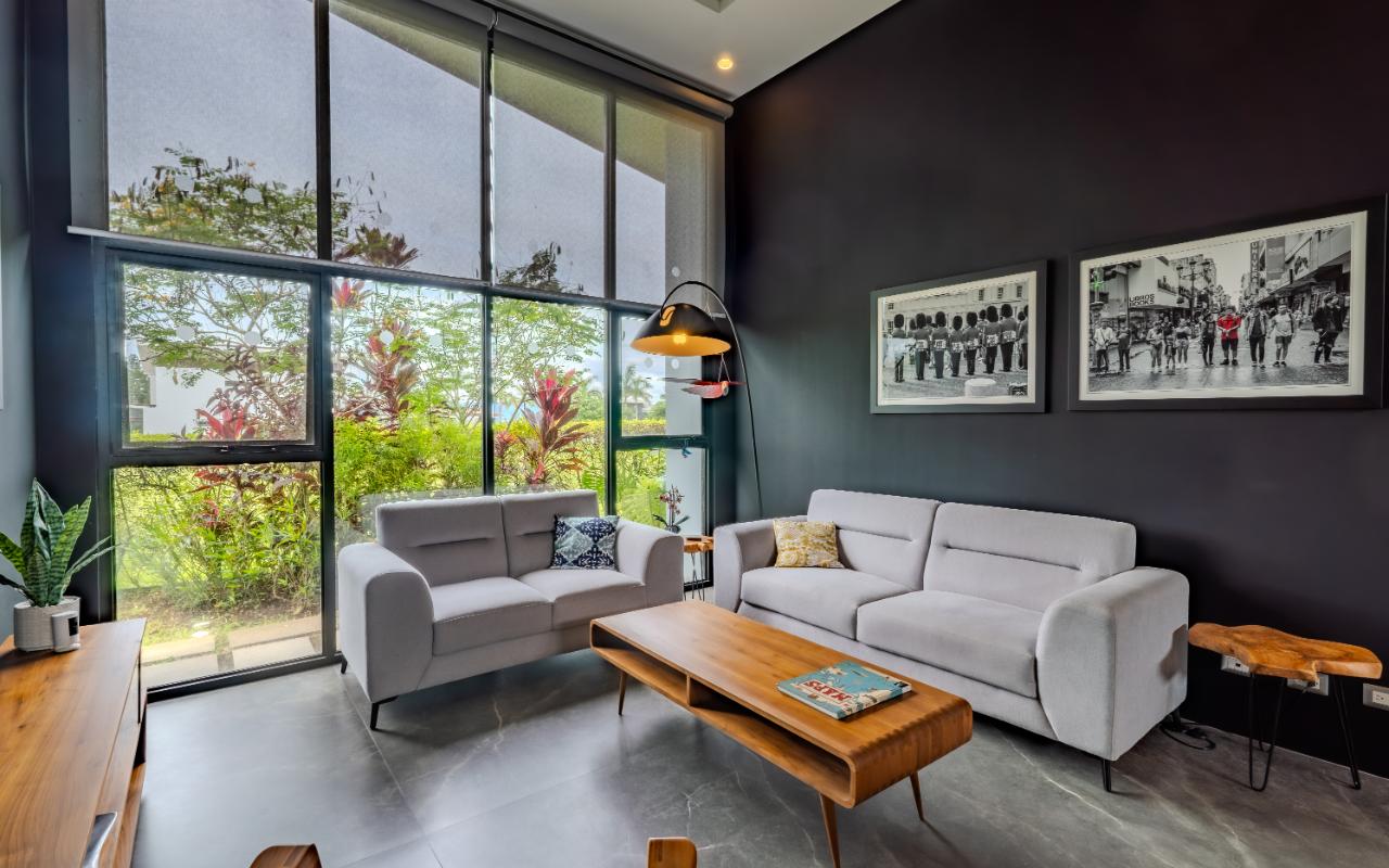 ID# 117446. Modern smart home for rent in Hacienda Los Reyes, Madero Negro condominium. 254 m² of construction, 629 m² of land, 3 bedrooms, 2.5 bathrooms, US$3,000. This spectacular single-level smart home in Madero Negro, Hacienda Los Reyes, combines contemporary design, functionality, and technology in one of the most exclusive residential communities in the western Greater Metropolitan Area. Its modern architecture, featuring double-height ceilings and floor-to-ceiling windows, fills every space with natural light and openness, creating a perfect connection between the interior and exterior. From the moment you walk in, the house conveys balance and sophistication. The open-concept social area integrates the living room, dining room, and terrace into a seamless space that invites comfort and togetherness. Folding glass doors open toward the garden, creating a natural transition to the outdoors—perfect for relaxing afternoons or entertaining with family and friends. Every detail has been carefully designed to provide modern comfort, with indirect lighting, blinds, and air conditioning all controlled via WiFi. The kitchen, both modern and functional, features a central island with Silestone countertops and high-end built-in appliances. Its open layout allows for easy interaction with the rest of the home, while the adjacent pantry and laundry room provide additional practicality and convenience. A hallway leads to the private wing, where the primary bedroom stands out for its spaciousness, high ceilings, and direct garden views. The ensuite bathroom, inspired by spa design, includes a large soaking tub, open shower, bidet, a custom-made vanity with Guanacaste wood countertop, and smart lighting that enhances the serene atmosphere. The secondary bedrooms are bright and comfortable, sharing a full bathroom with fine finishes, and can easily serve as guest rooms or a home office. The outdoor environment reinforces the sense of wellbeing, with lush green areas surrounding the property, a cozy backyard garden, a covered garage for two vehicles, and a direct view of the condominium’s park. Madero Negro offers 24/7 security, cobblestone streets, and a peaceful setting surrounded by nature. Hacienda Los Reyes provides a true country-club lifestyle, with access to a semi-Olympic swimming pool, gym, tennis and golf courts, restaurant, recreational areas, and expansive green spaces. Its strategic location places it just minutes from the international airport, El Coyol Corporate Center, and with easy access to Santa Ana, Escazú, and the Pacific beaches. The surrounding area also features international schools, cafés, restaurants, supermarkets, gyms, and coworking spaces—creating an ideal environment to live, work, and enjoy life. This modern rental home in La Guácima perfectly combines technology, design, and quality of life. It is designed for those seeking comfort, privacy, and elegance in a natural setting, without sacrificing convenience. A truly exceptional home within one of Costa Rica’s most prestigious and sought-after residential communities.