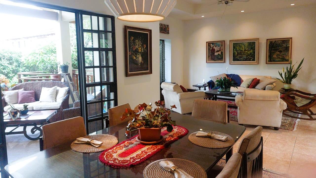 ID# 117449. House for Sale in Santa Ana, Hacienda Real Condominium — 349 m² Construction | 718 m² Lot | US $550,000 Located in the prestigious Hacienda Real Condominium in Santa Ana, this elegant single-level residence combines modern design, spaciousness, and a premium residential environment. With excellent layout and high-quality finishes, the property offers 349 m² of construction on a 718 m² lot, ensuring generous, private, and functional spaces for the whole family. The house features three bedrooms, each with its own private bathroom, plus a guest half-bath, a dedicated office ideal for remote work, and a maid’s room with a full bathroom. The social area flows beautifully through a spacious living and dining room with abundant natural ventilation, seamlessly connecting to a covered terrace perfect for relaxing afternoons outdoors and a private backyard that provides peace and privacy. It also includes four parking spaces (two covered and two uncovered), offering comfort and convenience for both residents and visitors. The Hacienda Real Condominium is a gated residential community of just 18 homes, ensuring a private and peaceful atmosphere with 24/7 controlled access. Its amenities include a recreational swimming pool, event ranch, tennis court, basketball court, and a children’s playground, all designed for family enjoyment within a secure and exclusive environment. Hacienda Real enjoys a strategic location in one of the most desirable areas of the Western Greater Metropolitan Area, where exclusivity, nature, and convenience converge. Just minutes from downtown Santa Ana and with quick access to Route 27, residents enjoy excellent connectivity to Escazú, La Guácima, and San José. Nearby, you’ll find renowned shopping centers such as City Place, Momentum Lindora, Terrazas Lindora, and Santa Ana Town Center, offering a wide variety of restaurants, shops, and services. For families seeking top-tier education, the area is home to prestigious international schools such as Country Day School, Blue Valley, Saint Jude School, and Pan-American School. Additionally, its proximity to private hospitals and clinics like Hospital CIMA, Clínica Bíblica Santa Ana, and Metropolitan Hospital Lindora ensures access to quality healthcare just minutes away. Outdoor and sports enthusiasts will also appreciate the easy access to Valle del Sol Golf Course, the Santa Ana Wind Park, and the surrounding natural trails that define this serene residential area. This property in Hacienda Real represents an excellent opportunity for those seeking a spacious, secure, and functional home within a low-density condominium featuring first-class amenities. With its contemporary style, impeccable maintenance, and prime location, this residence offers everything needed to enjoy a comfortable, private, and sophisticated lifestyle in Santa Ana.