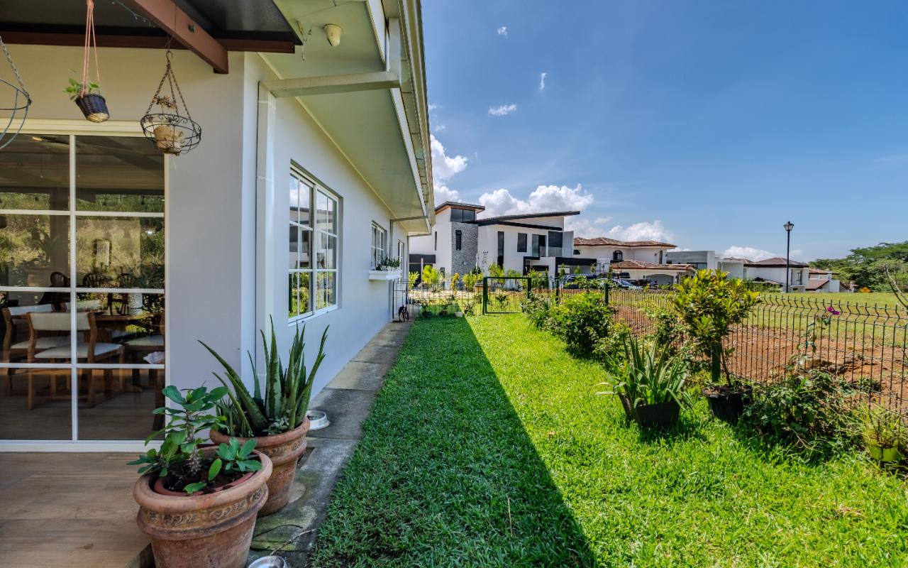 ID# 117454. Modern home for sale in La Guácima. 4 bedrooms, 2 bathrooms, 220 m² of construction, 600 m² of land, US$395,000. This contemporary residence offers an impeccable blend of functional design, modern finishes, and a peaceful residential setting just minutes from Plaza La Guácima—one of the most desirable and convenient areas in the western Central Valley. Built in 2023, the property sits on a spacious, flat lot that provides a comfortable, private, and family-oriented lifestyle. Its layout features bright spaces with cross-ventilation, a generously sized living room, dining area with direct access to the social areas, and a clean-lined kitchen equipped with quartz countertops and moisture-resistant melamine cabinetry for durability and low maintenance. The seamless connection to the pergola-covered terraces with wooden beams creates an ideal atmosphere to enjoy the garden, host guests, and take advantage of La Guácima’s warm climate. The private area includes four well-proportioned bedrooms, including a primary bedroom with excellent natural light, while the two bathrooms offer modern and practical finishes. The property provides parking for up to four vehicles and is located in a condominium known for its extensive green areas, two internal parks, two external parks, and a secure, family-friendly environment. Its strategic location grants quick access to schools, supermarkets, restaurants, Juan Santamaría International Airport, and Route 27, allowing for a practical lifestyle without sacrificing the tranquility that defines the area. This home represents an excellent opportunity for those seeking a contemporary, move-in-ready property with well-designed spaces and a solid residential environment in one of La Guácima’s most attractive communities.