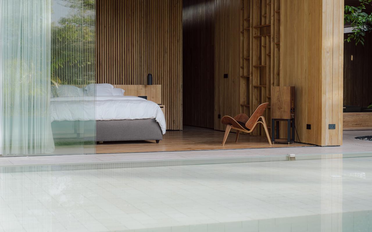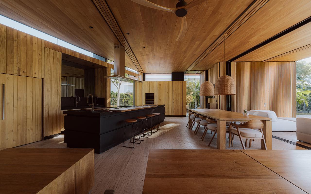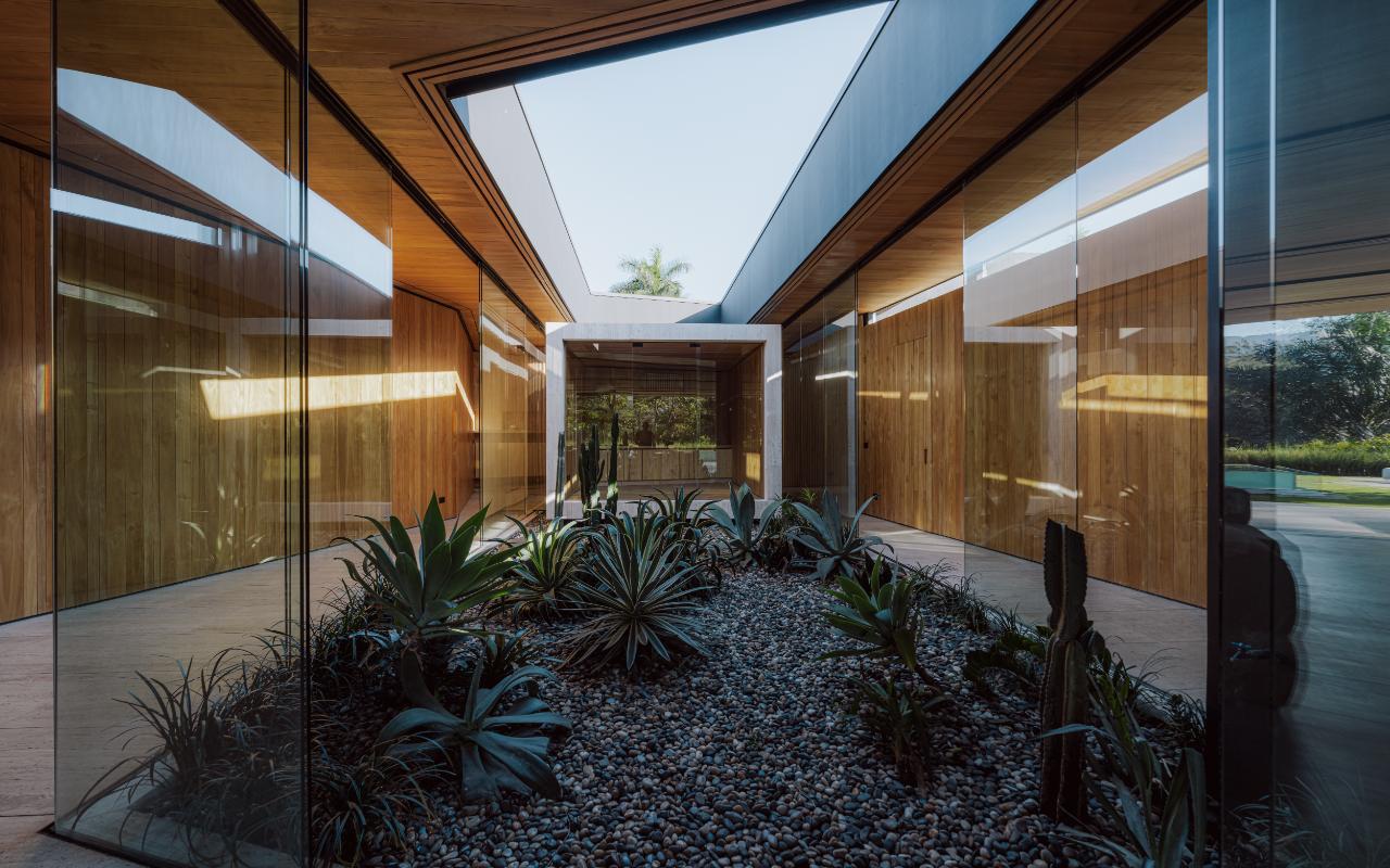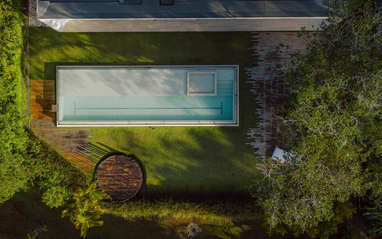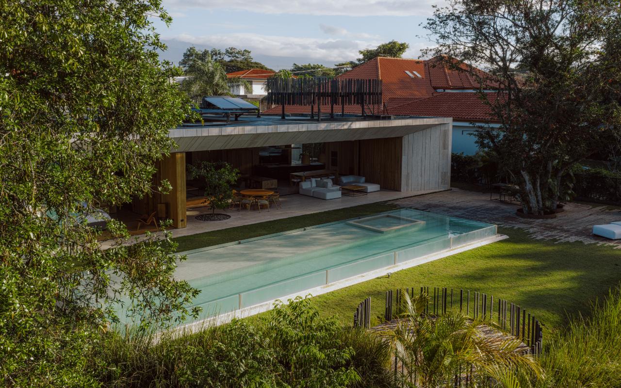 ID# 117469. Single-Level Architectural Masterpiece in Valle del Sol, Costa Rica. I 1,504 m² lot I 1,255 m² total construction. This is not a house. This is a statement. Set on a 1,504 m² lot with 1,255 m² of total construction, Casa Brutale stands among the most architecturally significant residences ever offered for sale in Valle del Sol, Santa Ana—the premier golf community on the west side of San José. Conceived on one single level with zero steps (only a teak sky deck above), the home captures elevated, uninterrupted views over the protected golf course green area and lake, delivering rare privacy, visual scale, and a constant connection with nature that defines Costa Rica real estate at its finest. The architectural language pays homage to Ludwig Mies van der Rohe and the iconic Barcelona Pavilion. Exterior façades and interior floors are wrapped in Italian travertine marble, while light wood walls and ceilings add warmth and acoustic elegance. Custom shelving subtly references the geometric compositions of Piet Mondrian. The result is a residence where architecture, art, and materials become the living experience. The layout features six en-suite bedrooms, three with walk-in closets, including a private guest wing with independent access, two suites, and its own TV lounge. The primary suite (approx. 105 m²) operates as a private spa, with soaking tub, dual showers, dual vanities, dual toilets, two walk-in closets, plus an outdoor jacuzzi and shower immersed in greenery. A dramatic interior courtyard anchors the home, flooding every space with natural light and enabling ideal cross-ventilation for Costa Rica’s climate. Above it, a cantilevered office floats with direct views to the golf course. The social core is defined by two designer kitchens with SMEG appliances and a one-of-a-kind custom island. A full staff apartment for two connects seamlessly to the secondary kitchen. Amenities continue with a large TV lounge featuring a retractable floor-rising TV, gym, sauna, wine cellar, storage rooms, toys room, and a signature BBQ social area. Outdoors, teak defines the lifestyle through a circular river/yoga deck, 100 m² and 20 m² garden decks, and a 360° panoramic sky deck. The centerpiece is a glass infinity pool overflowing on all four sides (15.7 × 4.7 m) with swim lane, integrated bathtub, and solar heating maintaining water temperatures between 28–31°C year-round. LED lighting throughout, solar hot water, and covered parking for 4–5 cars plus 3 motorcycles complete the property’s technical excellence. Located minutes from Route 27, Escazú, top private schools, leading clinics, fine dining, and just 30 minutes from Juan Santamaría International Airport (SJO), Casa Brutale is a true collector’s residence within the Valle del Sol golf community—crafted for buyers who understand architecture, scale, privacy, and the rarity of owning a landmark home in Santa Ana real estate.