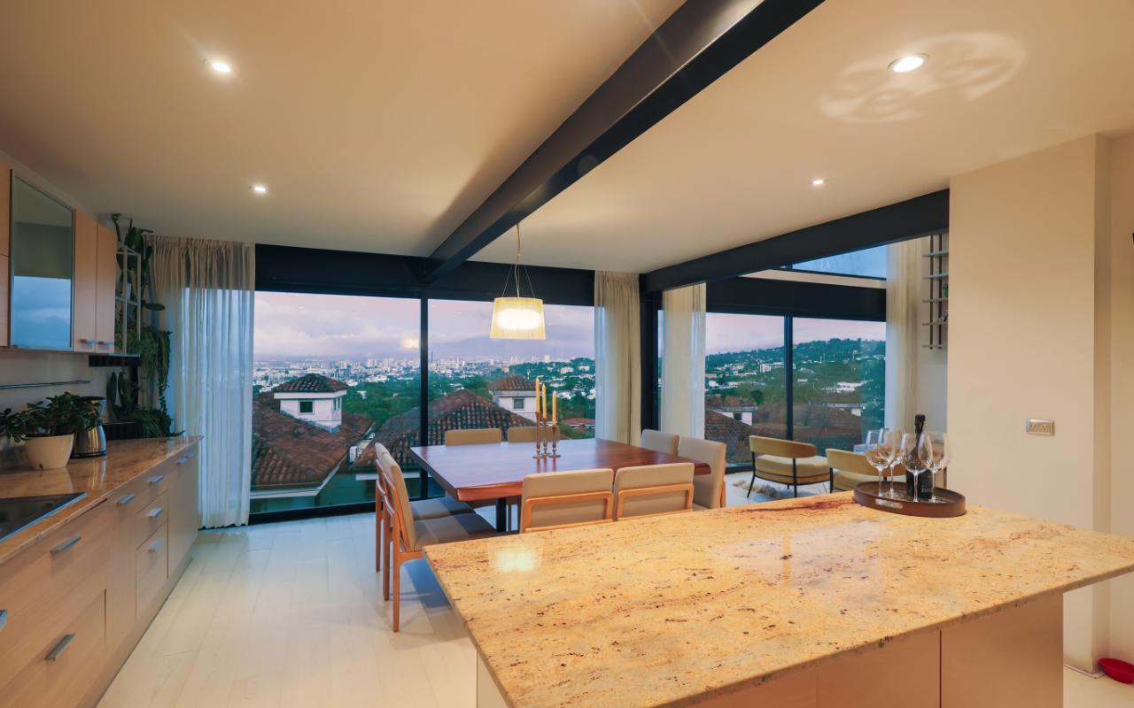 ID# 117474. $389,000 I 202m2 I This luxury two-bedroom apartment for sale in Escazú, located in the highly desirable residential area of Jaboncillos, represents a rare opportunity within the Escazú real estate market for buyers seeking architectural design, privacy, and panoramic city views. Offered at US$389,000, this 202 m² (2,174 sq ft), two-level residence is part of an exclusive boutique condominium known for its low-density layout, refined ambiance, and pet-friendly lifestyle. The apartment features 2 bedrooms, 2.5 bathrooms, central air conditioning, and a well-designed layout that balances sophistication with everyday functionality. The residence is defined by its dramatic two-story architectural concept and uninterrupted 180-degree views of the Central Valley skyline, visible from all principal living areas. The first level is dedicated to social and service spaces, offering an open-concept design where the kitchen, dining area, and living room flow seamlessly together, all oriented toward expansive city views that define luxury living in Escazú. This level also includes a guest bedroom with en-suite access, a guest powder room, and a discreet laundry room, ensuring comfort and practicality for both residents and visitors. The layout is ideal for entertaining while maintaining a refined, private atmosphere rarely found in city residences. The second level is entirely dedicated to the primary master suite, creating a private retreat above the main living spaces. This suite features a spectacular designer walk-in closet with a center island, extensive shoe storage, and integrated LED lighting, offering both visual impact and everyday functionality. The en-suite bathroom is accessed directly through the closet and elevates the experience with floor-to-ceiling mirrored walls and ceiling, centered around a striking freestanding soaking tub, delivering a spa-like ambiance with panoramic urban views. A unique glass-floored catwalk connects the upper level to an additional private area, adding architectural character while reinforcing the sense of openness and light throughout the residence. Located in one of Costa Rica’s most prestigious urban zones, this apartment enjoys immediate access to Escazú’s top amenities, including upscale shopping centers, fine dining, private hospitals such as CIMA, international schools, and corporate centers. The property offers fast connectivity to Route 27, placing the Pacific Coast beaches—including Jacó and Playa Herradura—within approximately one hour, and the Juan Santamaría International Airport just 20–25 minutes away, making it ideal for both full-time living and lock-and-leave convenience. Combining bold architectural elements, luxury finishes, panoramic views, and a prime Jaboncillos location, this two-level luxury apartment in Escazú stands out as a refined urban residence and a strong long-term investment within the Costa Rica luxury real estate market.