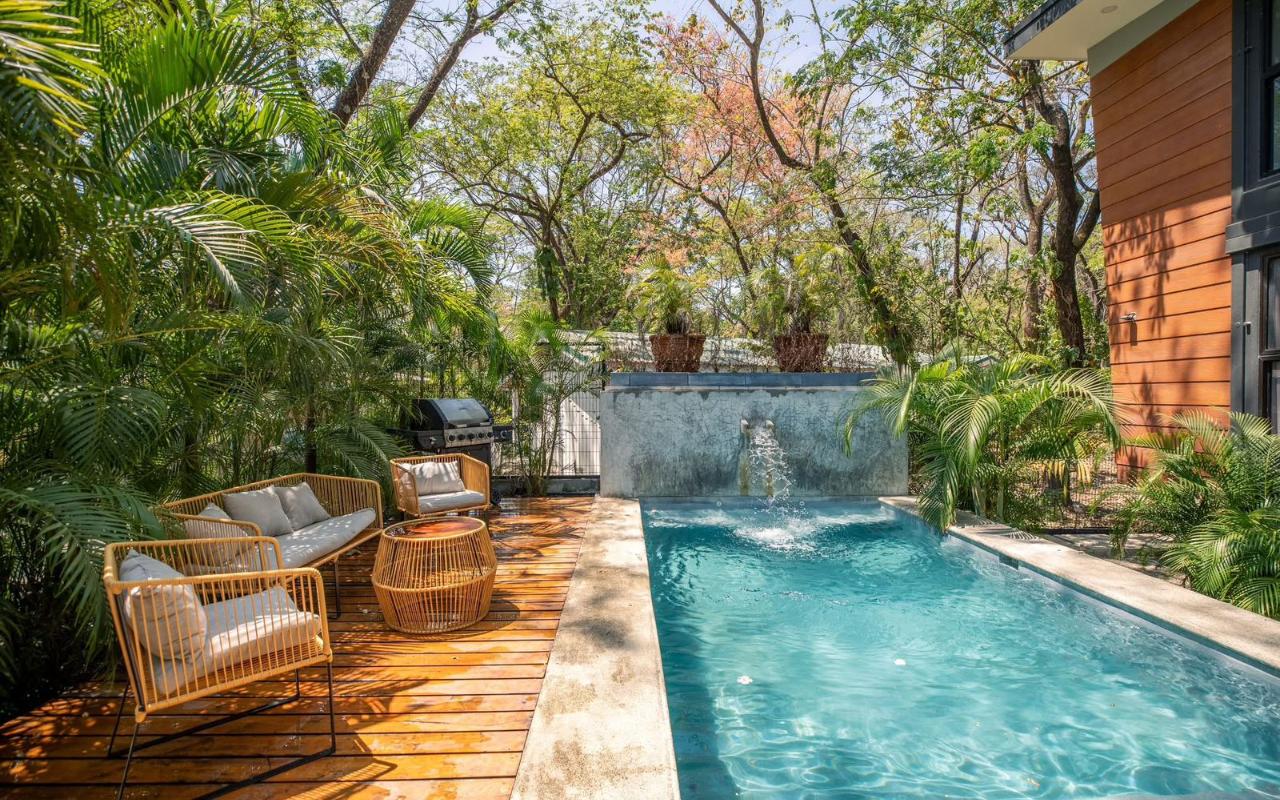 ID# 117475. Flora Apartments for Sale | 8 Rental Units in Nosara. $1,800,000. Construction 800m2 | 16 bedrooms | 12 bathrooms Located in the heart of Playa Pelada, Nosara, one of the most desirable coastal destinations in Costa Rica’s North Pacific, this unique 8-unit container apartment complex for sale in Nosara represents a rare turnkey investment opportunity combining immediate cash flow, strong short-term rental demand, and long-term appreciation potential. Situated just a 15-minute walk from Playa Pelada beach, the Nosara River, and minutes from Playa Guiones, this income-producing property is immersed in lush tropical jungle surroundings, where daily life is framed by native wildlife, canopy trees, and the tranquil atmosphere that defines Nosara real estate. The project, known as Flora Apartments, consists of eight fully furnished and fully rented apartments, strategically designed to serve both long-term tenants and high-performing Airbnb vacation rentals, with documented rental history and financials available for qualified buyers. The complex is distributed over two levels and includes four Type A apartments (65 m²) featuring one bedroom, one bathroom, integrated kitchen and laundry tower, multipurpose living space, and a covered outdoor terrace ideal for indoor-outdoor living, as well as four Type B apartments (75 m²) offering two bedrooms, two bathrooms, a formal laundry area, open kitchen, and expansive covered terraces that function as outdoor living and dining areas, all shaded by mature trees that naturally regulate temperature and enhance privacy. Residents and guests enjoy a beautifully landscaped shared garden pool, secure on-site parking for one vehicle per unit, and additional street parking, ensuring convenience without compromising the low-density, eco-conscious character of the area. This Nosara investment property for sale benefits from its proximity to world-class surf beaches such as Playa Guiones and Playa Marbella, the Ostional Wildlife Refuge—internationally recognized for its sea turtle arribadas—along with Playa Garza and San Juanillo, known for fishing, snorkeling, and diving, making it highly attractive to international travelers, digital nomads, and lifestyle renters. The property is also close to Guiones Norte restaurants, boutique shops, yoga studios, and wellness centers, as well as the Nosara Civic Association hiking trails, river paths, horseback riding routes, and mountain trails, reinforcing its appeal for both short- and long-term occupancy. With low operating costs, consistent monthly income, and a prime location in one of Costa Rica’s most stable and high-demand rental markets, this container apartment complex in Nosara offers a compelling opportunity for investors seeking a scalable, lifestyle-driven asset or a private retreat with built-in income in the Guanacaste luxury real estate market.